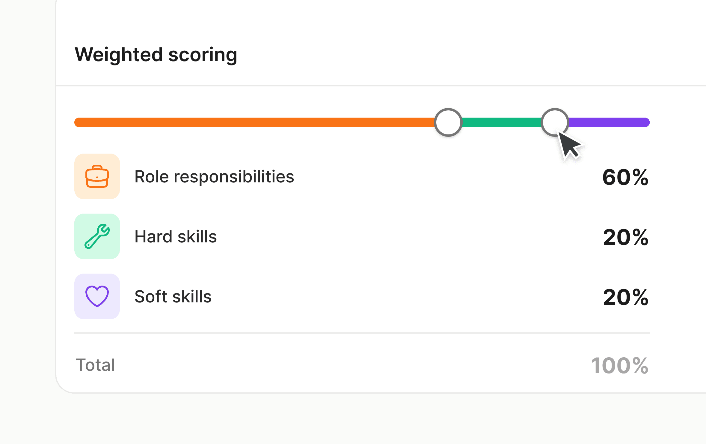 These inputs feed directly into the evaluation engine, ensuring every candidate is assessed against the same framework.