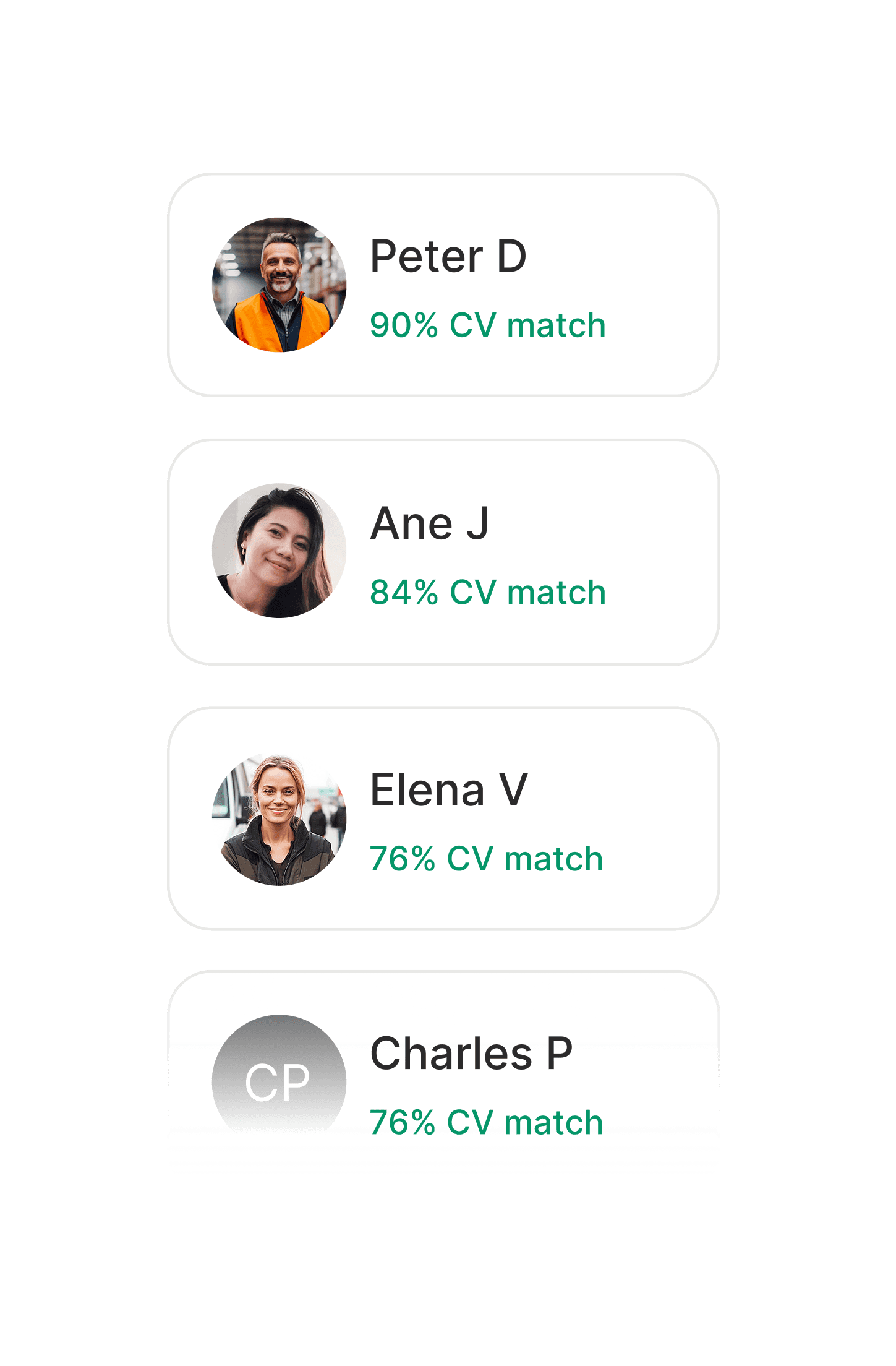 Each CV is evaluated against your role requirements before interviews begin