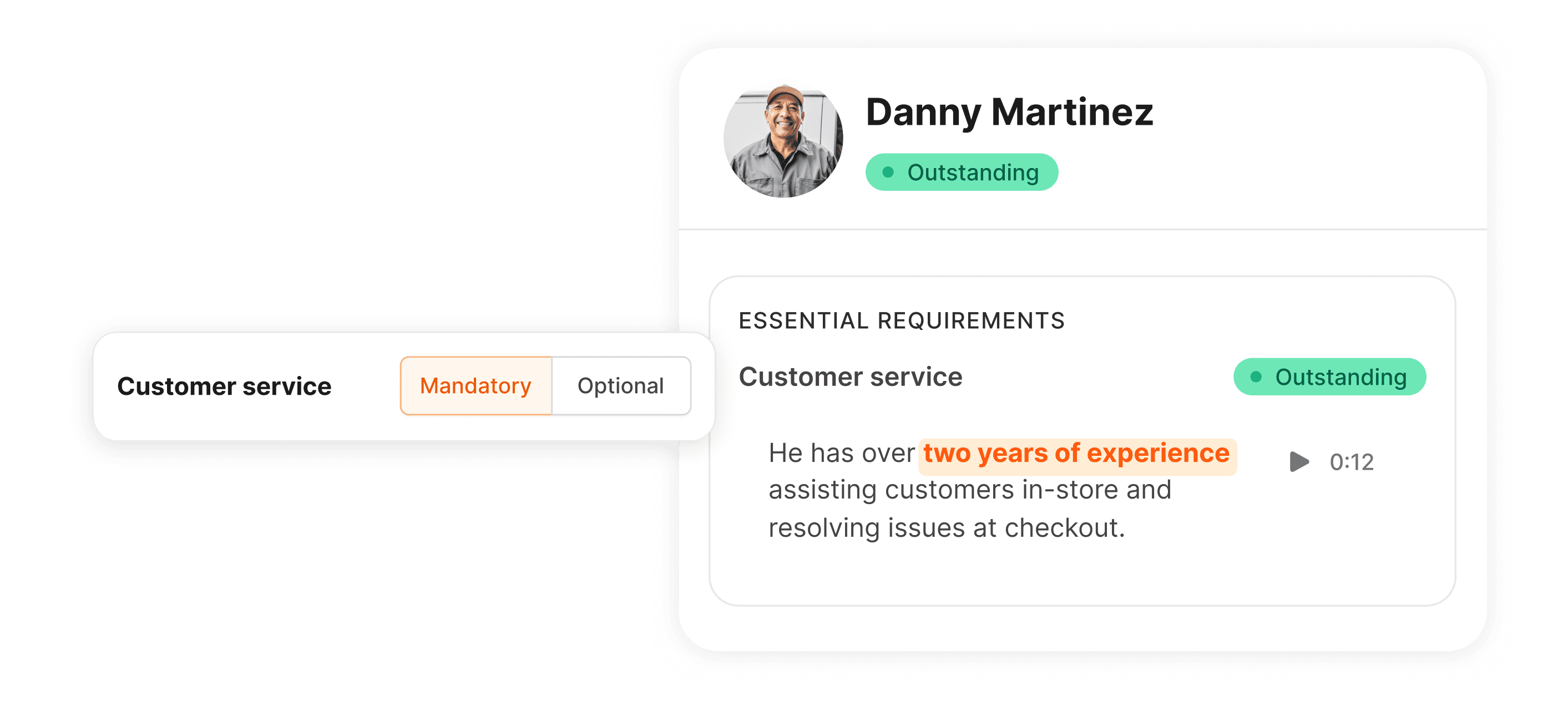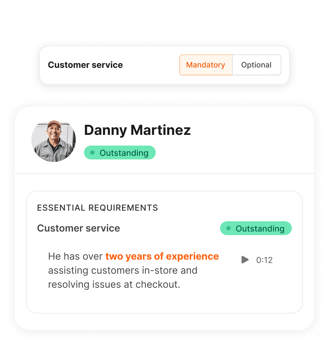 Instead of reviewing the full interview, teams can quickly validate whether a candidate meets the requirement.
