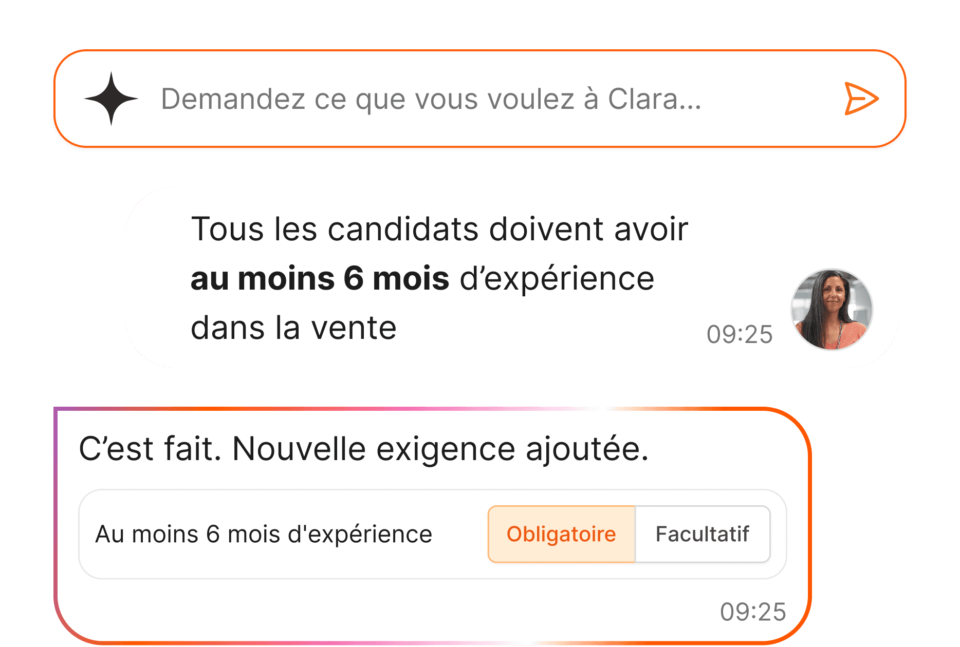 Façonnez Clara en fonction de votre processus d'embauche