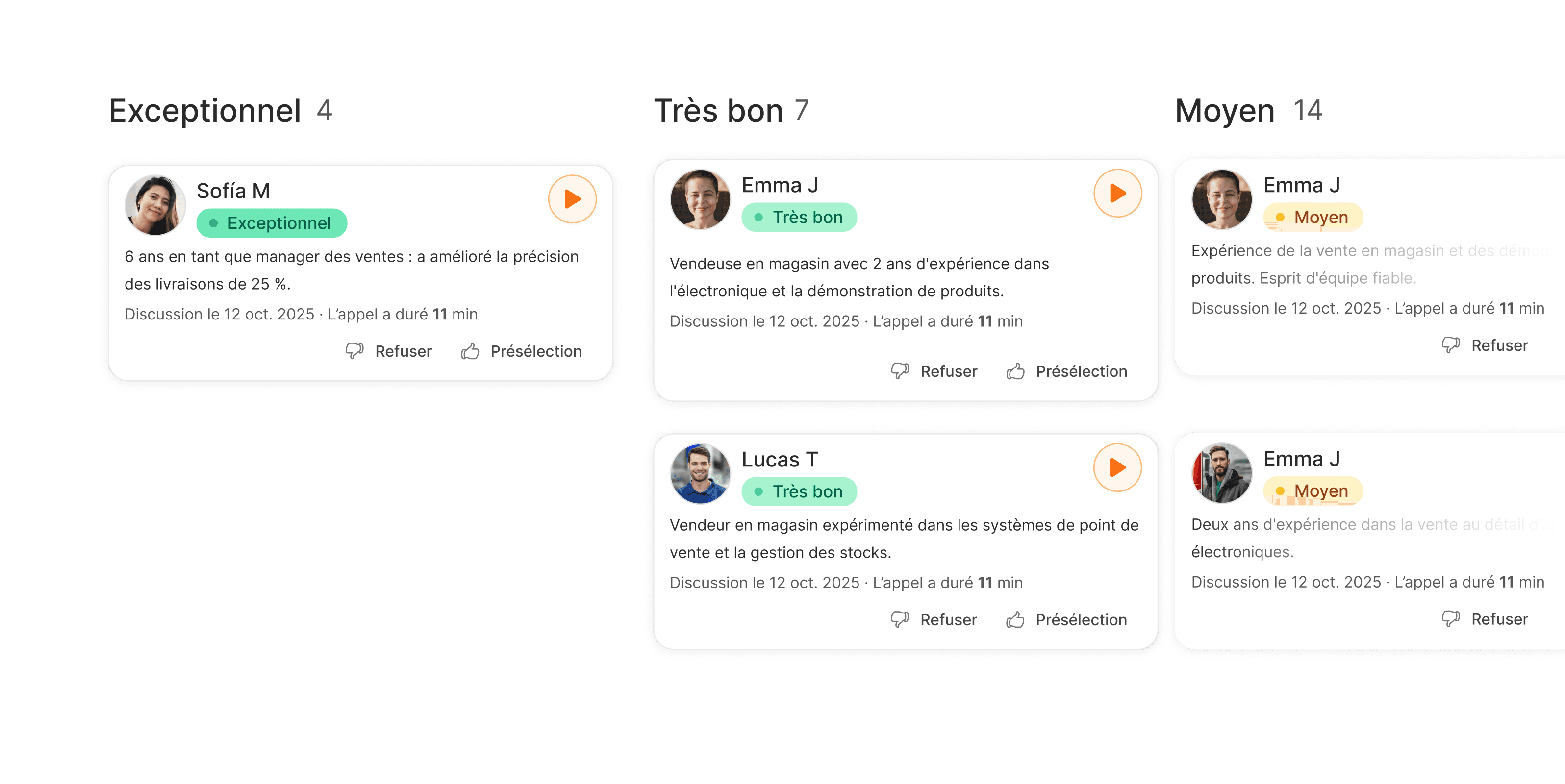 Établissez des limites claires pour faire progresser, examiner ou rejeter les candidats.