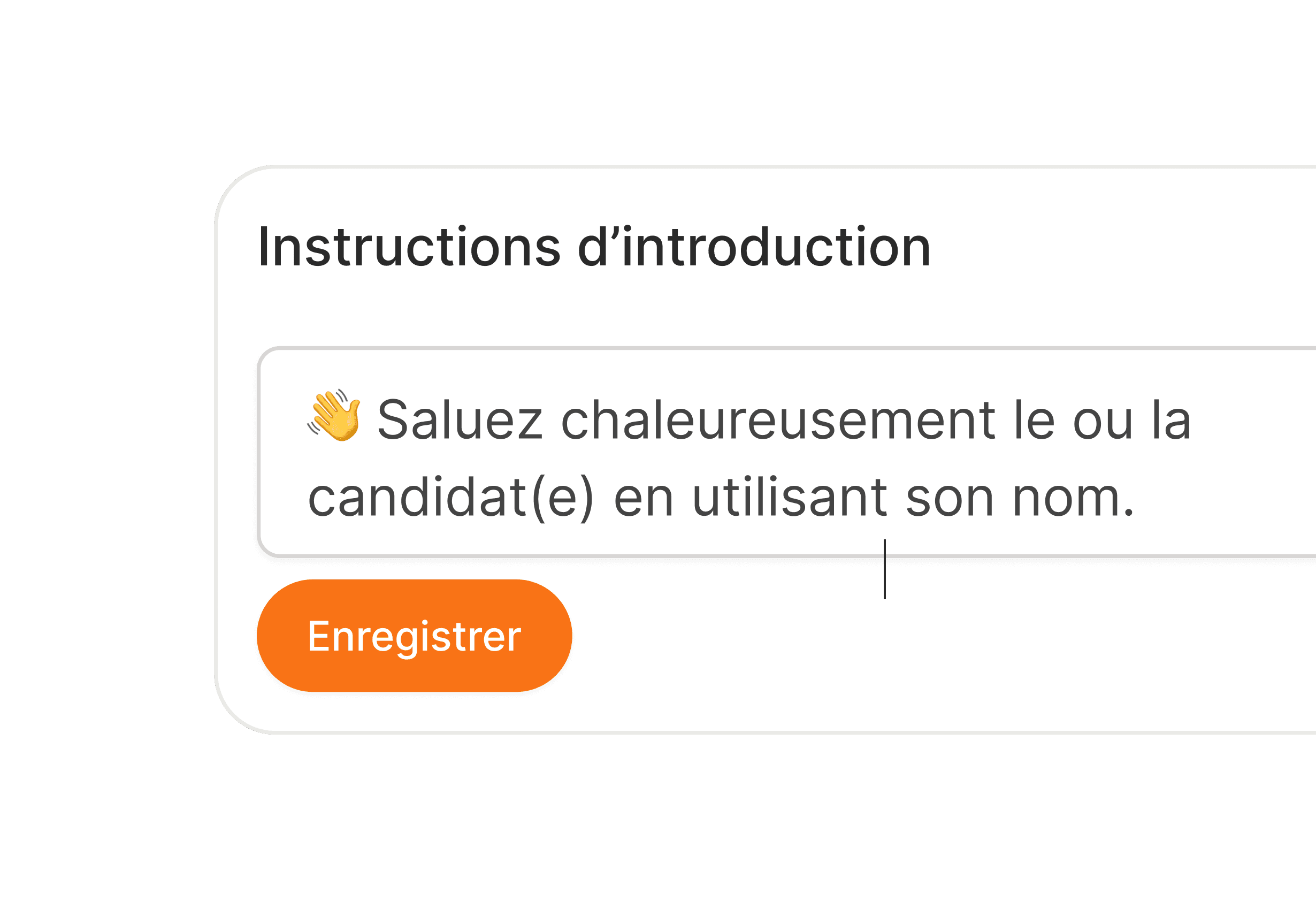 Clara est configurée selon vos critères de recrutement. De la manière dont les entretiens commencent à la façon dont les candidats sont évalués, chaque étape est définie par vos exigences et appliquée de manière cohérente à tous les candidats.