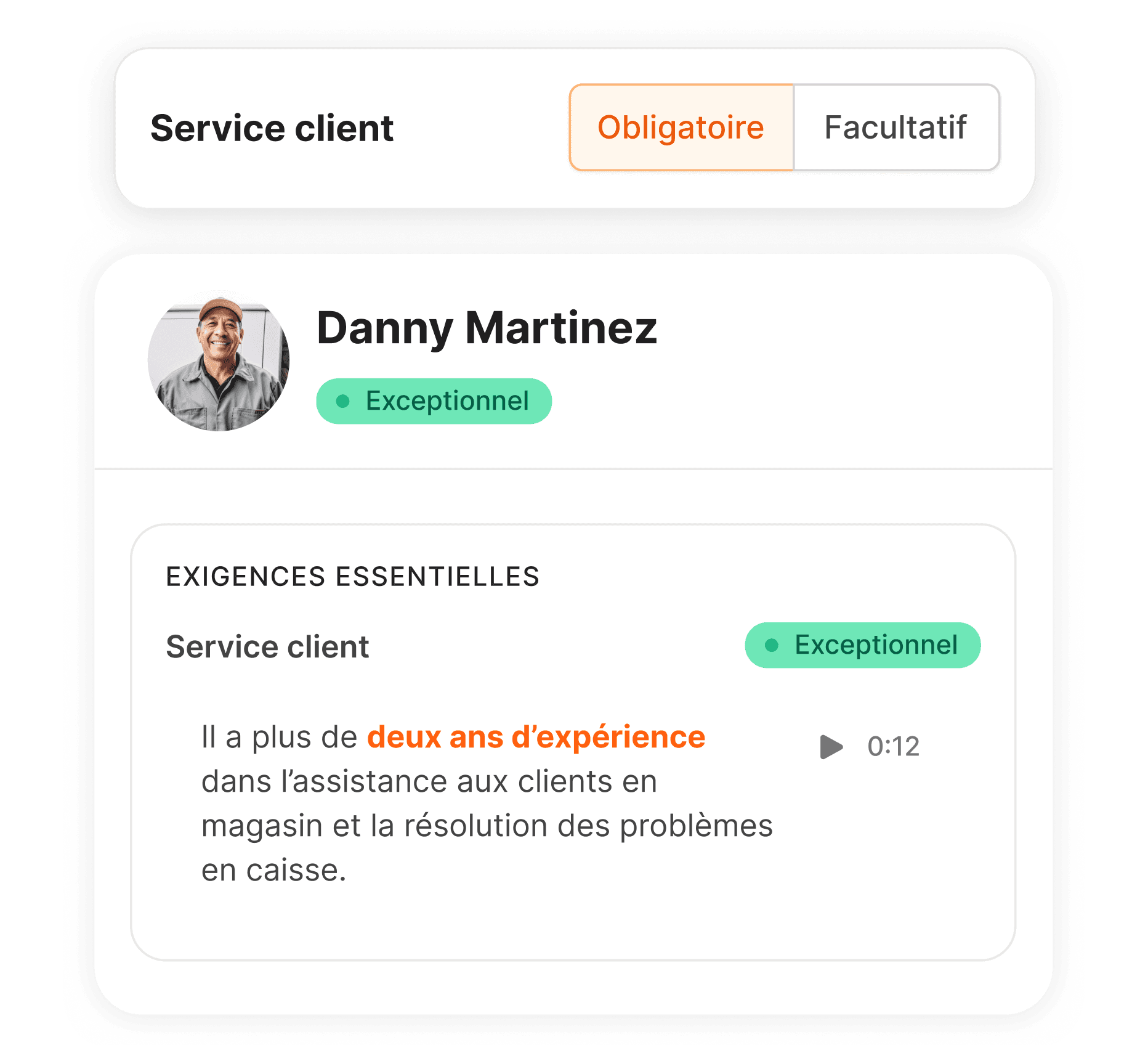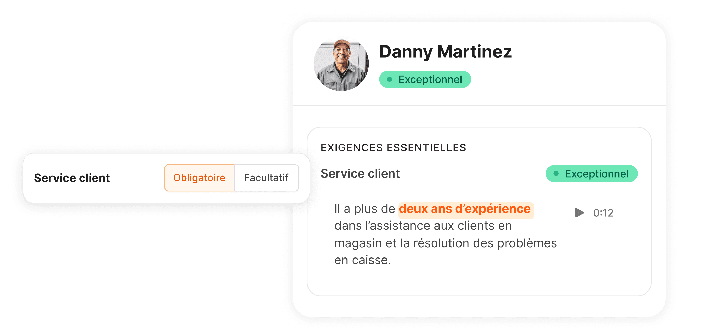 Au lieu de revoir l’entretien complet, les équipes peuvent valider rapidement si un candidat répond aux exigences.